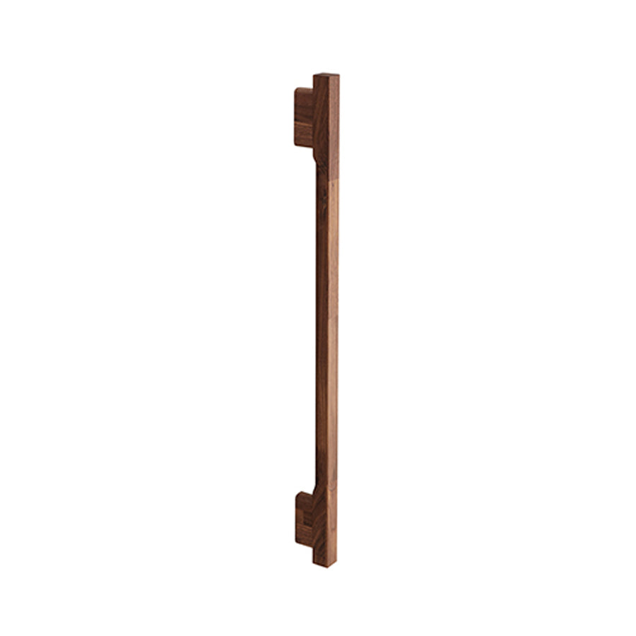 銘木無垢の質感を活かした高級感と、単純な角型形状ではなく、滑らかで自然な指のかかりを得られるよう、壁面側をR曲面とする独自の断面形状を採用し、安心・安全・快適な日常生活を支える手摺です。